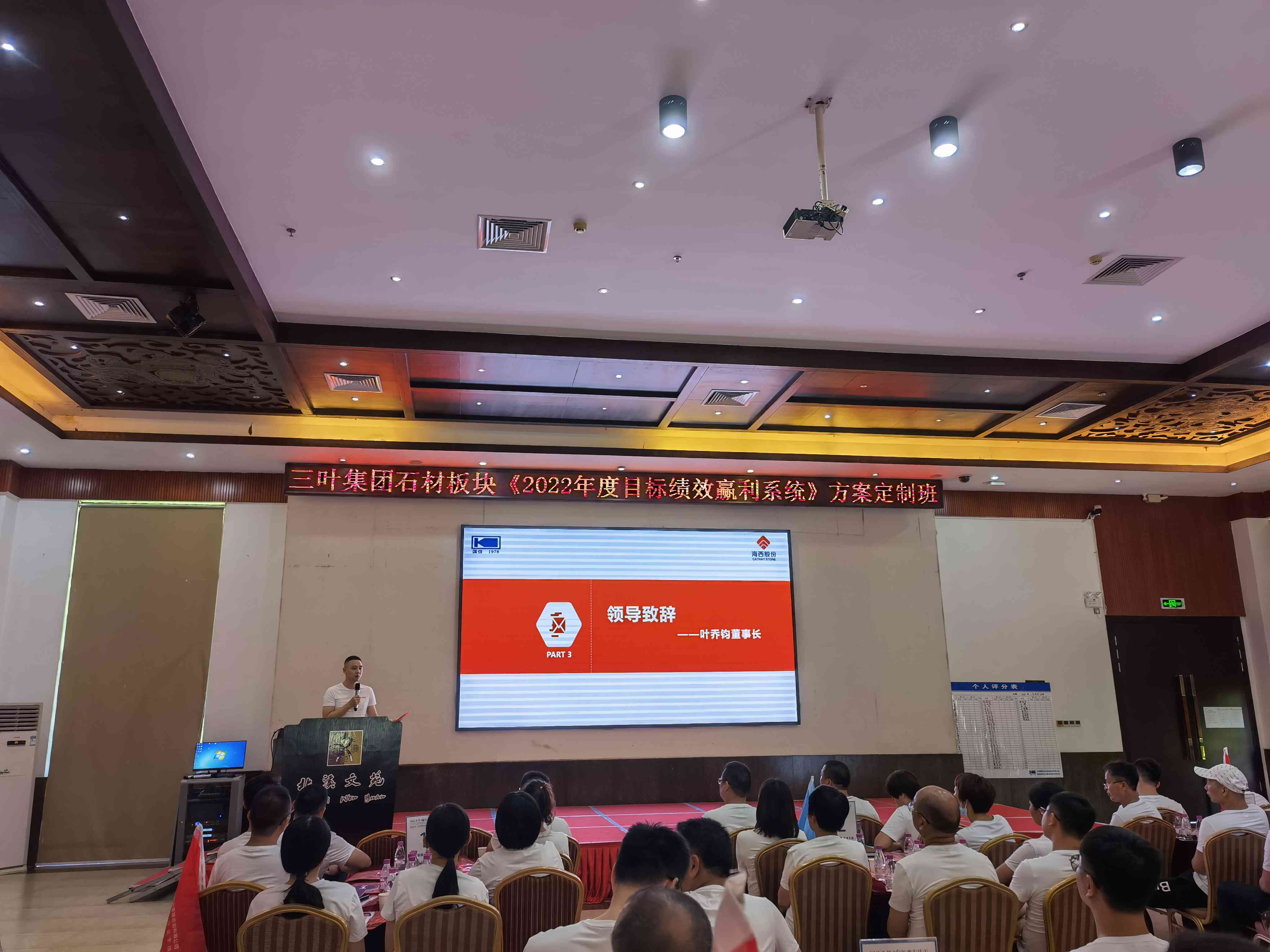 三葉集團石材板塊2022年度目標(biāo)績效贏利系統(tǒng)培訓(xùn)作者: 來源: 時間:2021-9-13 16:43:25 9月10日—12日,三葉集團石材板塊《2022年度目標(biāo)績效贏利系統(tǒng)》方案定制班在永春北溪書院正式開課,此次課程持續(xù)三天兩夜,由國信咨詢公司的老師們擔(dān)任主講。此次參與培訓(xùn)學(xué)員69人,分為7個小組。 三天兩夜的定制班課程十分緊湊。定制班課程不是單純的反復(fù)聽課,還要完成小組作業(yè)。大家喊著“海西好!我就好!的口號,在課上專心致志、認(rèn)真學(xué)習(xí)、積極回答問題,為團隊加分。另外,所有人還需要充當(dāng)保護人,默默關(guān)心自己的保護對象,留意TA的優(yōu)點,指出TA的不足,給TA鼓勵,為TA準(zhǔn)備禮物,執(zhí)行“神秘保姆任務(wù)” 三天的課程很快就過去了。課程結(jié)束后,教官帶領(lǐng)學(xué)員們進行拓展活動,所有人圍成一個圈拉起一根繩子,組成一個“動力圈”。讓大家深刻地感受到團隊的向心力和凝聚力,建立了團隊的信任感,發(fā)揚團隊精神。