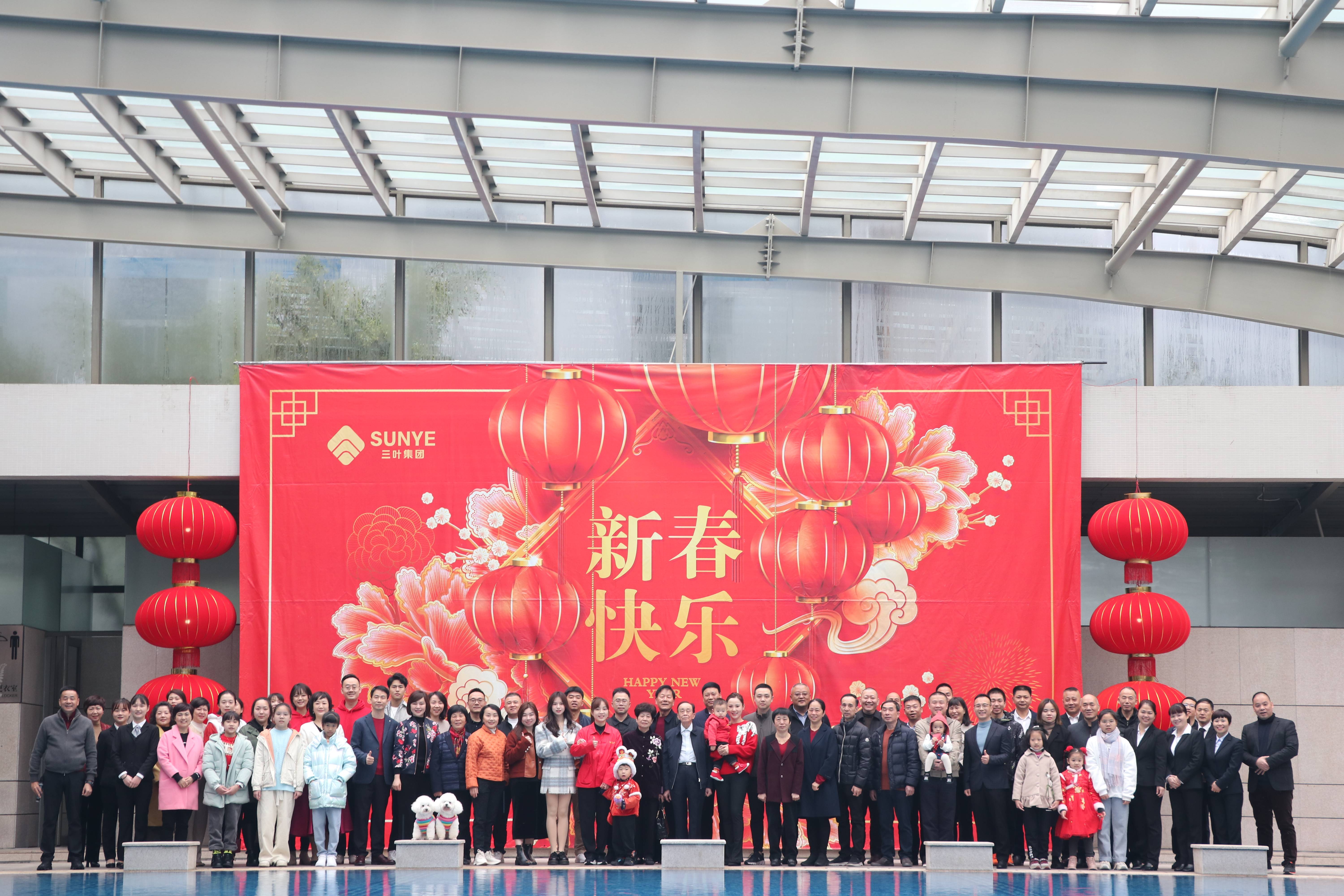 2022年2月1日(正月初一)上午,三葉之家游泳館張燈結(jié)彩、喜氣洋洋。三葉集團(tuán)2022年新春團(tuán)拜會(huì),在這里隆重舉行。集團(tuán)董事局主席葉維新先生攜家人與公司員工及家屬歡聚一堂,辭舊迎新,共賀新春佳節(jié)。